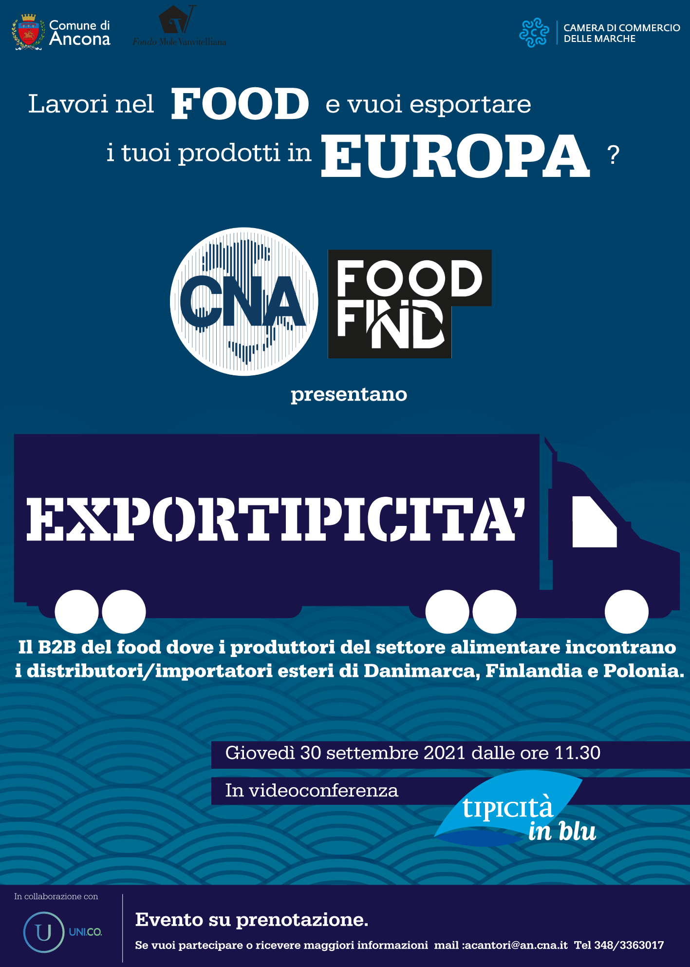 La CNA Agroalimentare di Ancona e Food Find sono a proporre l’iniziativa B2B Agroalimentare nell’ambito di Tipicità in Blu. La proposta che vogliamo proporre alla vostra attenzione è incentrata sull’incontro tra domanda ed offerta destinata all’estero, in particolare in Danimarca, Polonia, Fillandia.